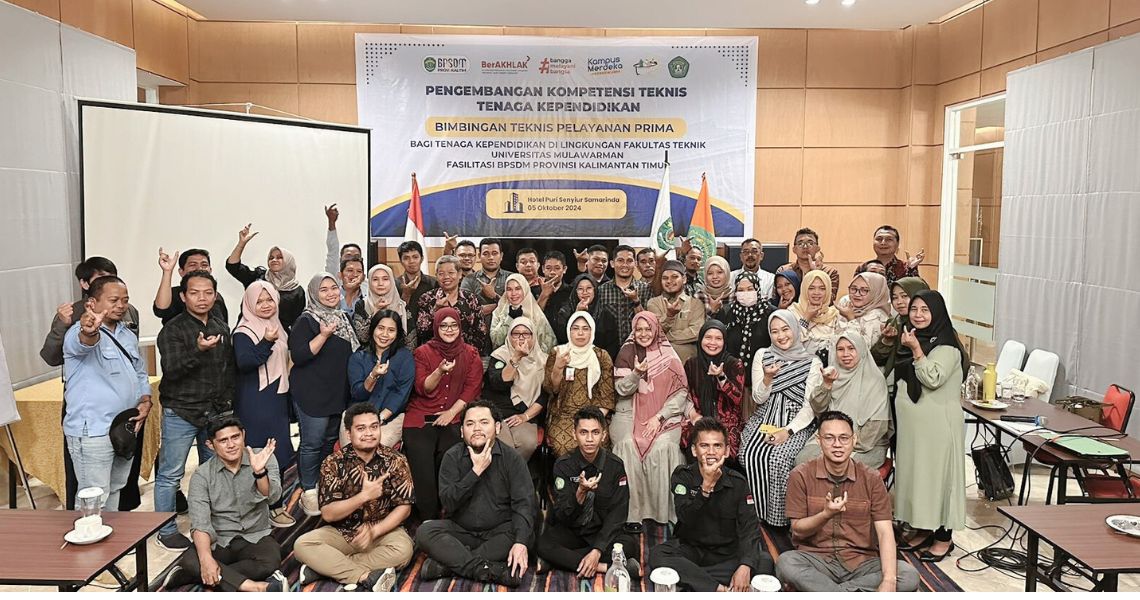 FT UNMUL Bekerja sama dengan Badan Pengembangan Sumber Daya Manusia Provinsi Kalimantan Timur Corporate University (BPSDM Kaltim CorpU) melalui Bidang Pengembangan Kompetensi Teknis (PKT) menyelenggarakan menyelanggarakan Bimbingan Teknis (Bimtek) Pelayanan Prima untuk tendik pada hari sabtu, 5 Oktober 2024.
